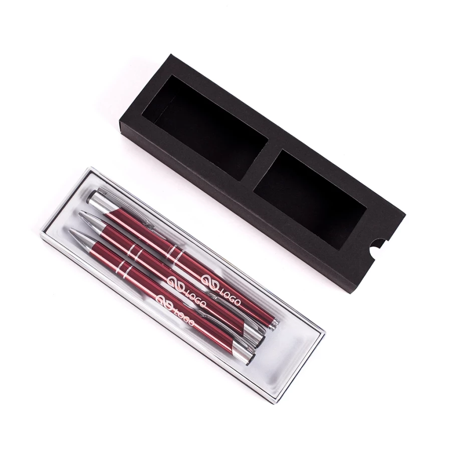 Cosmo 3-osainen setti on tyylikäs setti, joka koostuu kynästä, tussista ja lyijykynästä. Setti on saatavana useina väriversioina. Se on valmistettu alumiinista, ja painatus on toteutettu laserkaiverrustekniikalla. Kynään ja lyijykynään sijoitettavan kuvion koko on 55x6 mm ja kynään 50x6 mm. Kaiverrus voidaan sijoittaa oikealle tai vasemmalle puolelle. Koko sarja on pakattu tyylikkääseen laatikkoon. Tällaista mainosvälinesarjaa voidaan käyttää luovutettaessa se asiakkaalle kiitokseksi miellyttävästä yhteistyöstä.